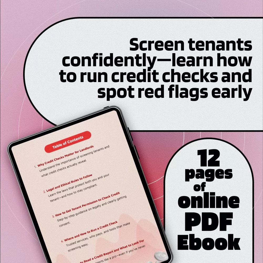Are you a landlord or property manager looking to rent your property to reliable tenants—but unsure how to truly vet them? Our downloadable eBook, “How to Do a Credit Check on a Tenant and Spot Red Flags Early,” is your complete, easy-to-follow guide to screening tenants like a pro. Whether you’re managing your first rental or scaling your property portfolio, this digital resource will walk you through every essential step of the credit check process so you can make smart, informed leasing decisions with confidence.
